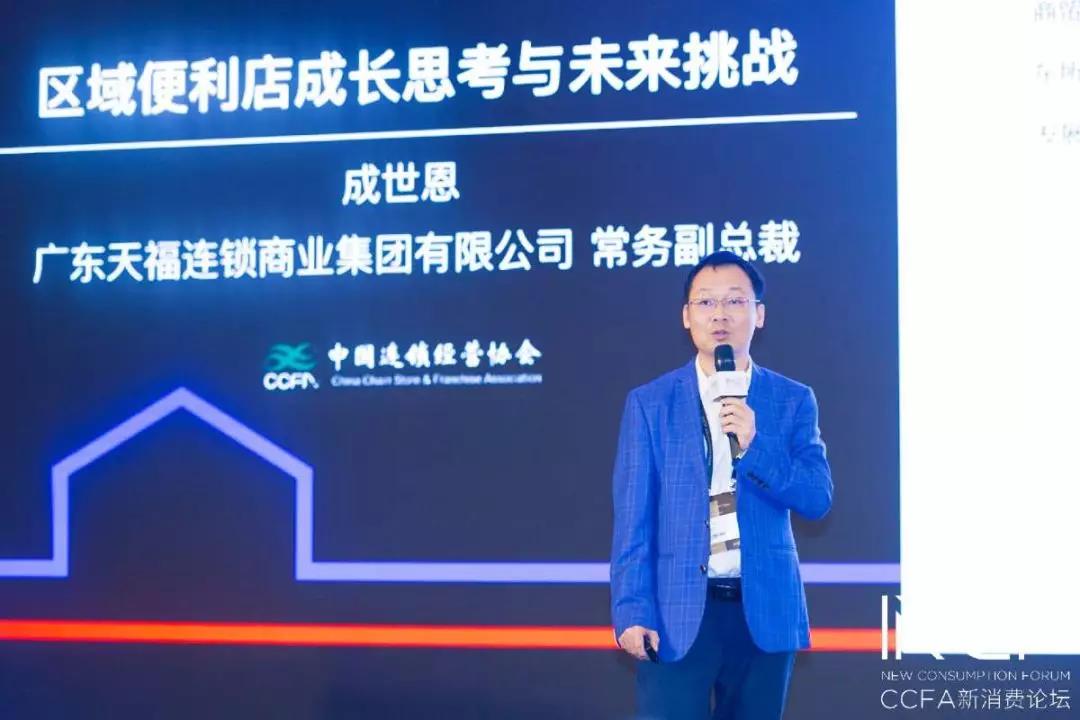 在由中國連鎖經營協會主辦的“新消費論壇——2019中國便利店大會”上,廣東天福連鎖商業集團有限公司常務副總裁成世恩在區域便利店品牌分論壇上分享了區域便利店加盟的成長思考與未來挑戰。以下為演講主要觀點: