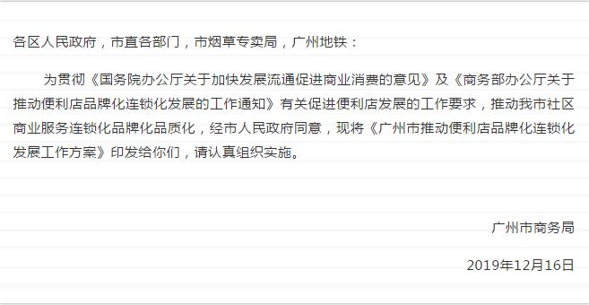 廣州市推動便利店品牌化連鎖化發展工作方案