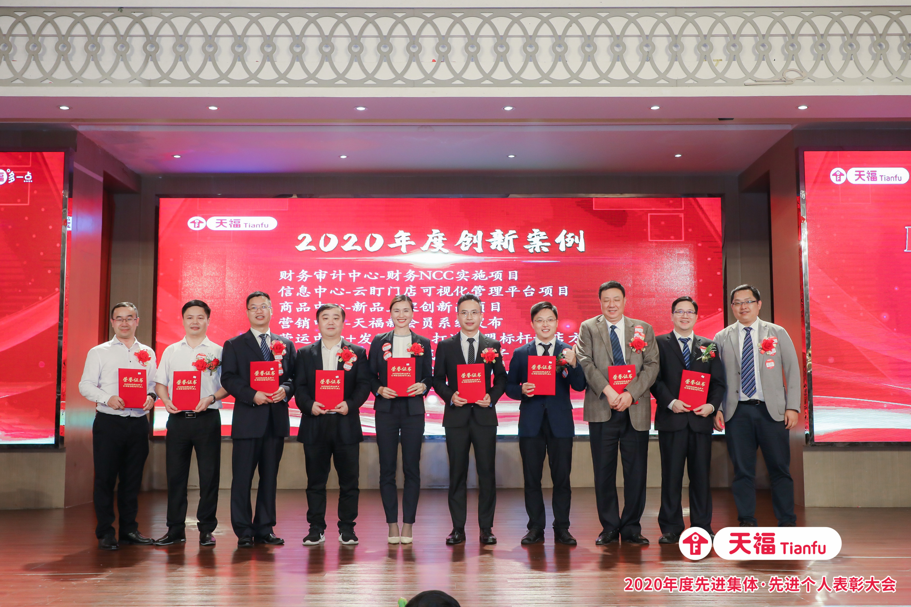 大會上,頒發了2名最受矚目的總裁特別獎,8個創新案例獎,13個先進集體,47名優秀管理人員,67名優秀員工,35名優秀標兵、營業員、店長,10家優秀門店;并為27位通訊員頒發聘任證書。