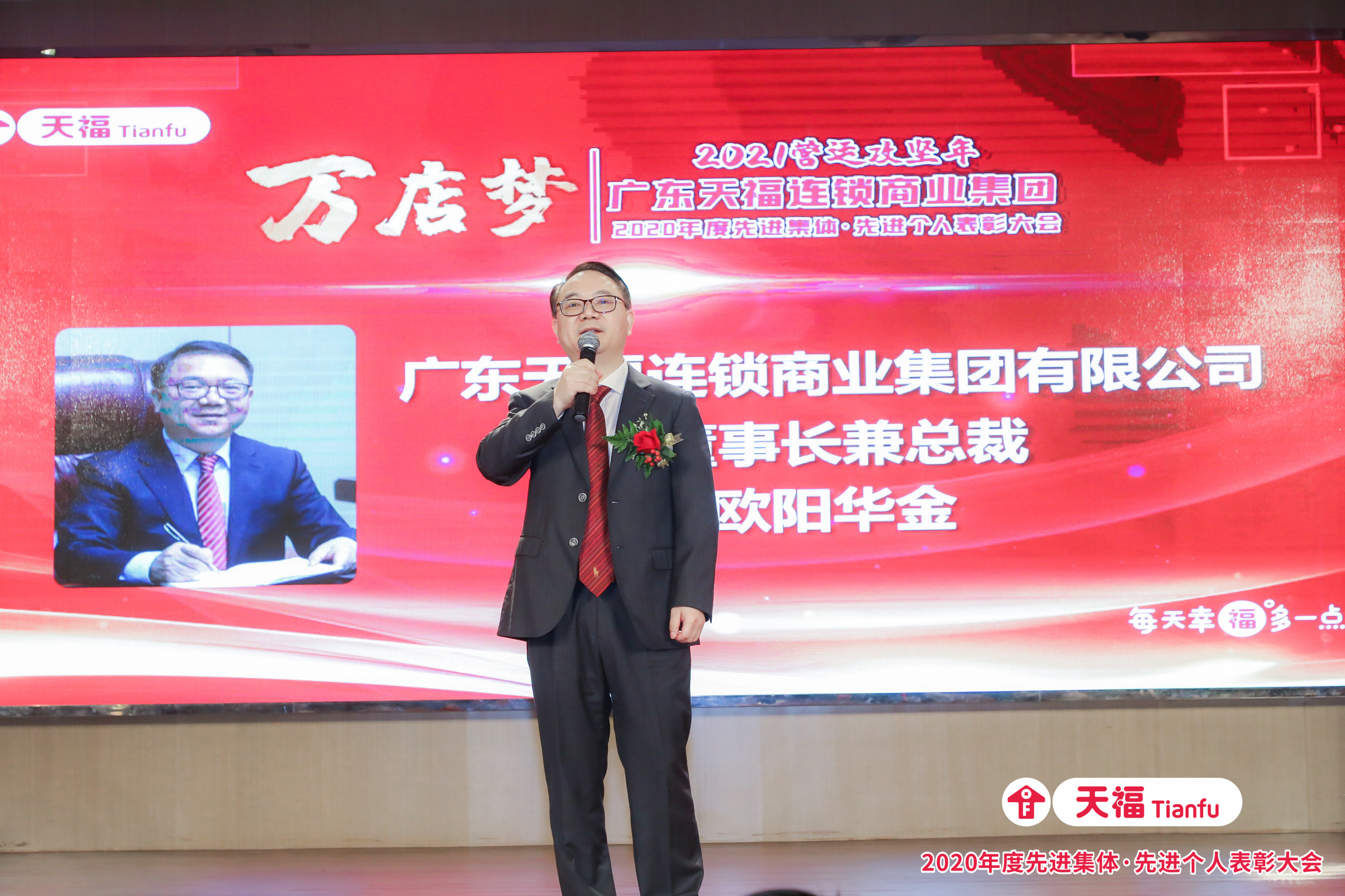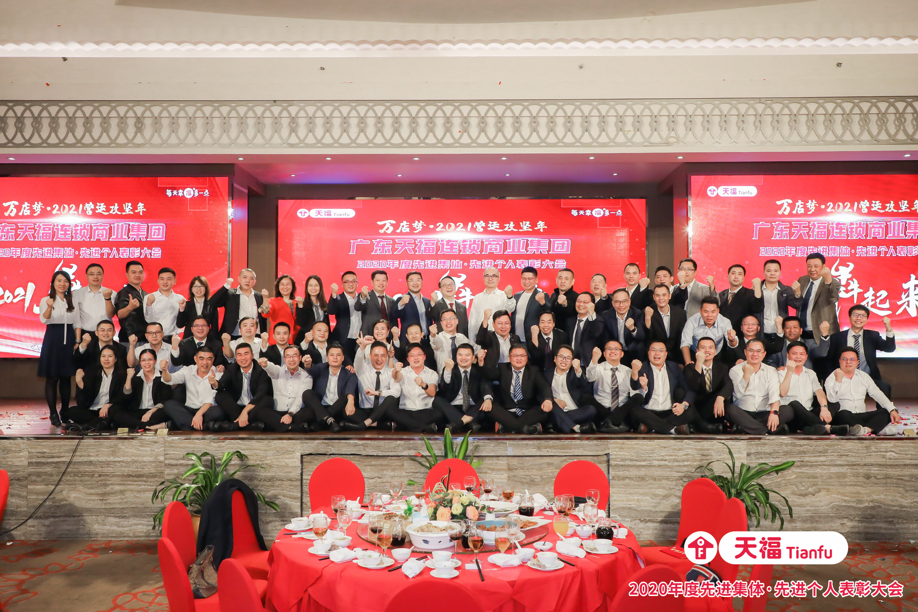 歐陽總提出,2020年,天福強勢雄展,2021年,我們需快馬加鞭為天福的萬店夢夯實筑牢基礎,在“誠信、團結、創新、拼搏”的企業精神指引下,上下同心筑夢,共同擦亮我們的青春活力紅招牌,繪就“天福地圖”,使“天福紅”遍布城市的每一個角落。