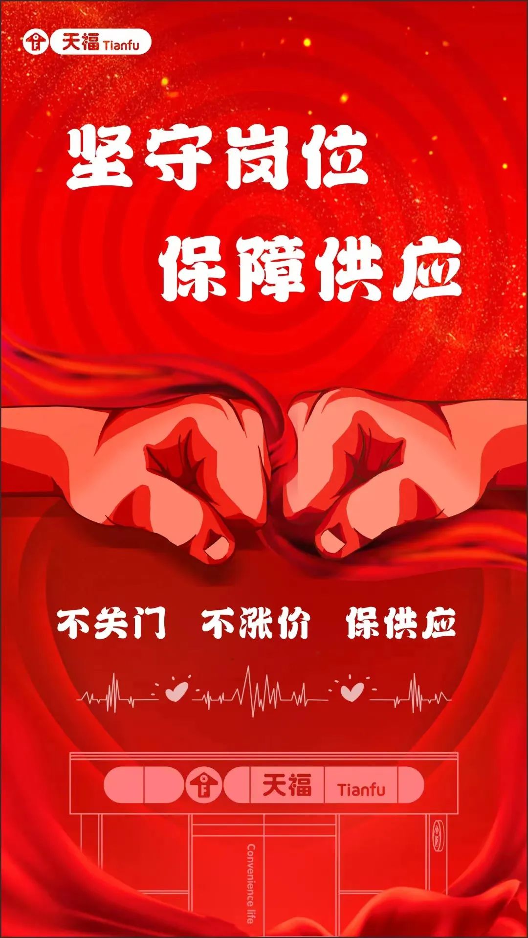 當(dāng)時(shí),隨著防控措施的全面升級(jí),城市大部分營(yíng)業(yè)場(chǎng)所、門(mén)店一律暫停營(yíng)業(yè)。此時(shí),與生活必需密切相關(guān)的天福門(mén)店,自覺(jué)地肩負(fù)起了保供穩(wěn)價(jià),穩(wěn)定民生的責(zé)任。疫情期間,天福集團(tuán)發(fā)布門(mén)店保供應(yīng)倡議書(shū),倡議門(mén)店堅(jiān)持不關(guān)門(mén)、不漲價(jià)、保供應(yīng),積極落實(shí)防疫“五件套”。全體天福門(mén)店積極響應(yīng)號(hào)召,日夜奮戰(zhàn)在門(mén)店當(dāng)中,用行動(dòng)踐行使命,全力以赴為市民群眾筑起民生防線!