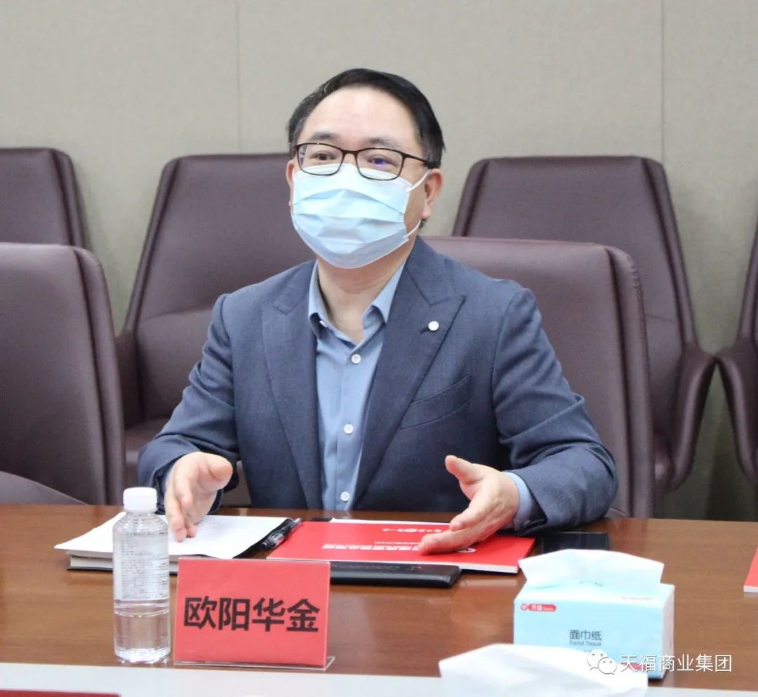 天福集團(tuán)董事長(zhǎng)兼總裁歐陽華金熱情接待朱利民書記一行,并陪同參觀了集團(tuán)辦公場(chǎng)所及南城天福大廈旗艦店。