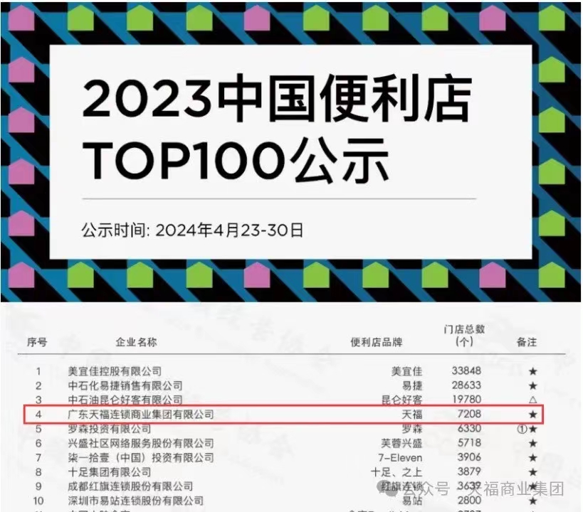 喜報(bào)!天福集團(tuán)蟬聯(lián)中國(guó)便利店百?gòu)?qiáng)榜TOP4